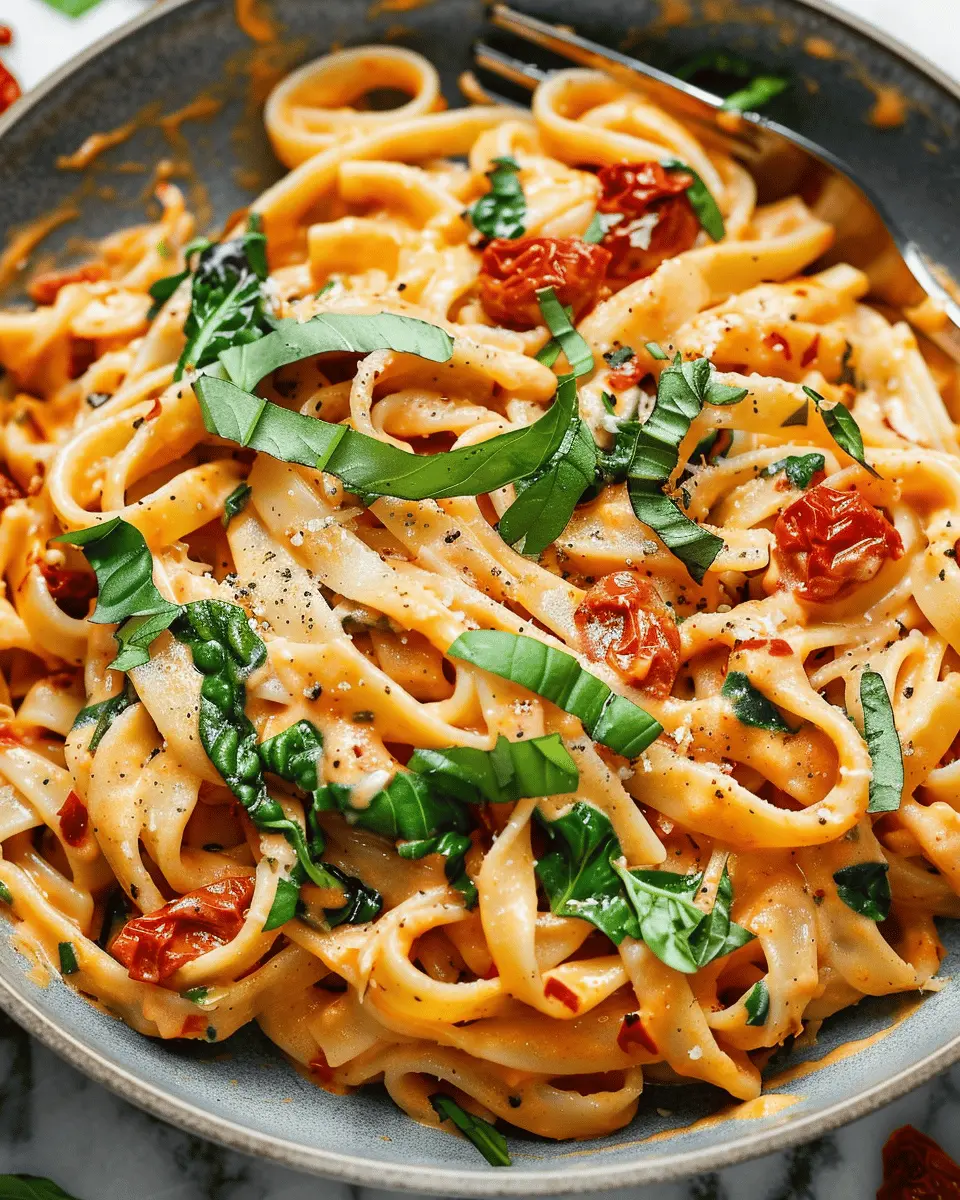 PrintVegan Creamy Sun Dried Tomato Pasta: A Rich and Comforting Delight